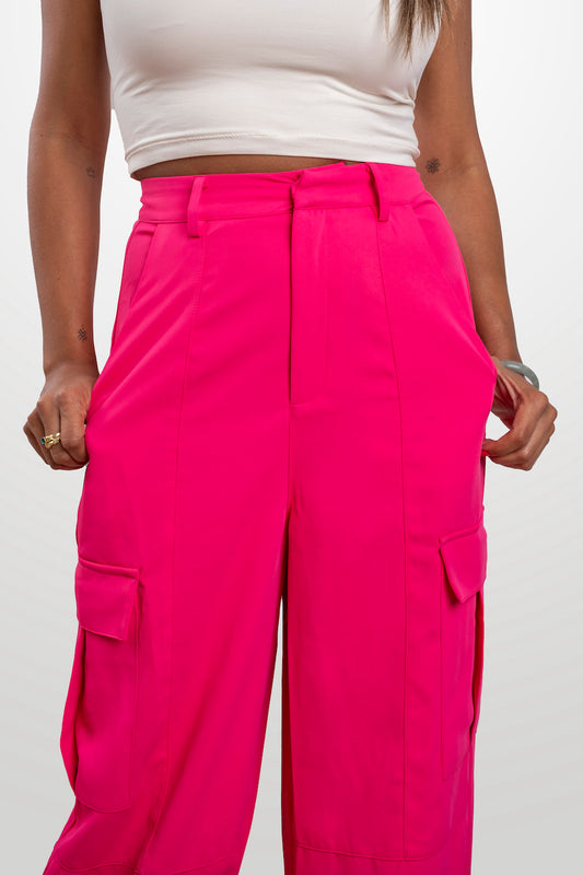 Hot Pink Isla Wide Leg Cargo Pants - NEW WARDROBE? 40% DISCOUNT AT CHECKOUT!