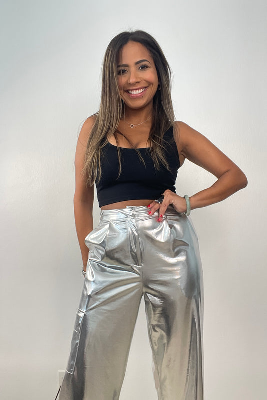Metallic Elegance High-Waisted Straight Leg Pants - NEW WARDROBE? 40% DISCOUNT AT CHECKOUT!